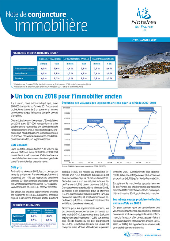 Tendances du marché au 3ème trimestre 2018, prix de l'immobilier : La conjoncture immobilière analysée par les notaires de France.