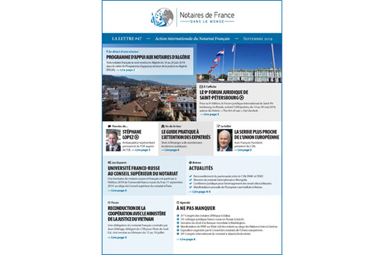 L'action internationale du notariat français de juillet à septembre 2019 vous est présentée dans La lettre des notaires de France dans le monde.