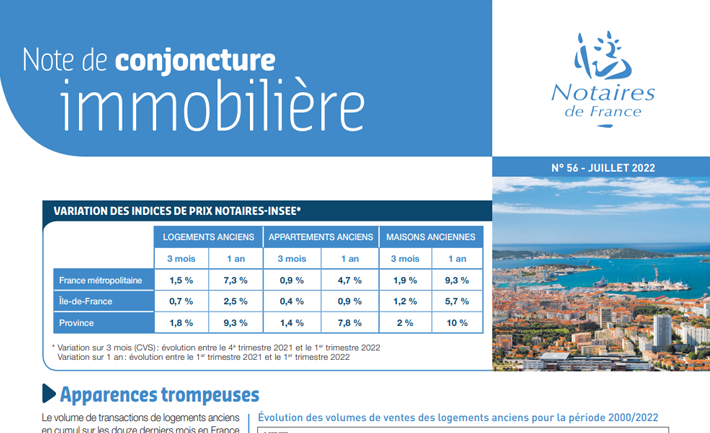 Indices Notaires-Insee des prix des logements anciens en province – Deuxième trimestre 2022
